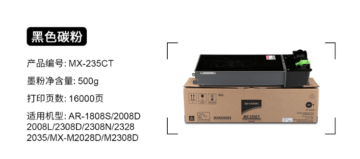 夏普(SHARP)粉盒墨粉碳粉墨盒硒鼓耗材 1808S墨盒碳粉235CT